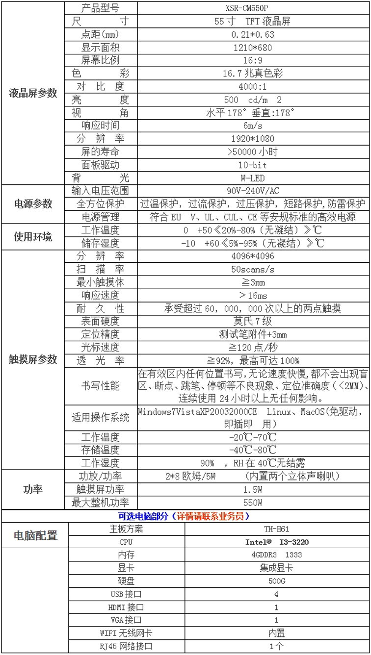 新視銳55寸觸摸一體機——立式紅外觸摸產品參數: