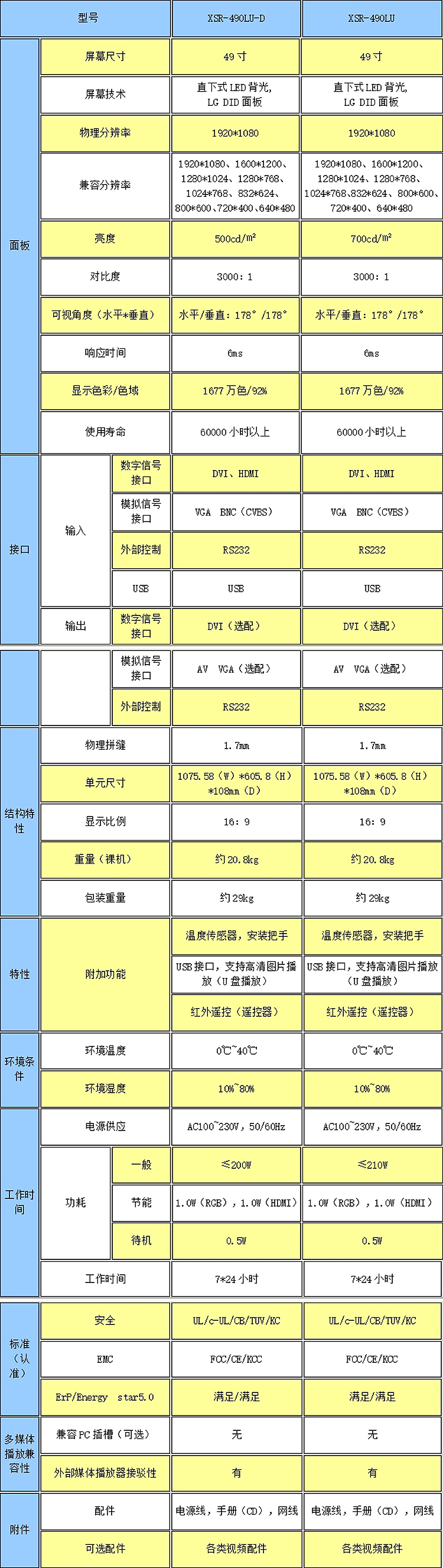 新視銳49寸超窄邊1.8mm拼縫液晶拼接單元產品參數: