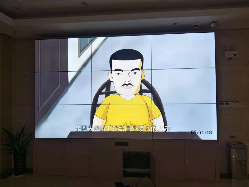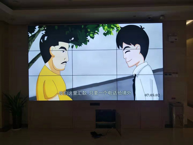 此次項目采用3.5mm拼縫設(shè)計完成3×3拼接顯示設(shè)備,在合肥農(nóng)商銀行大廳完成安裝搭建。