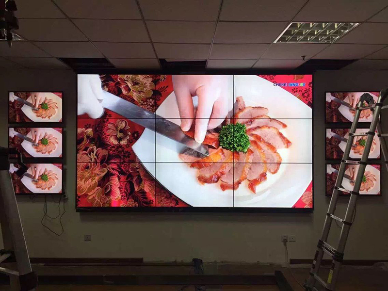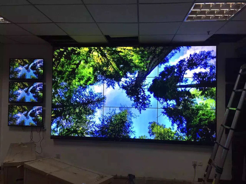 1、46寸3.5mm拼縫3*3超窄邊液晶拼接墻,倆邊各3臺32寸液晶監視器 ;