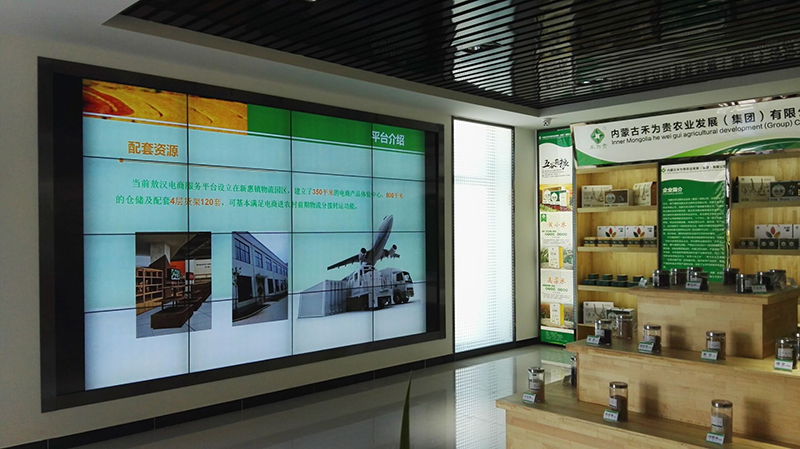 為更好的展示農牧業生產產品、彰顯敖漢文化、吸引外資引入,敖漢電商平臺同科技接軌,數字化高清液晶拼接墻成為敖漢旗領導的首選!新視銳根據現場環境布置需求,同敖漢旗領導認真溝通協商,最終采用47寸超窄邊4.9mm拼縫4X4拼接形式,打造數字高清多功能一體化現代電商平臺,展示敖漢旗深厚的人文、地理文化!